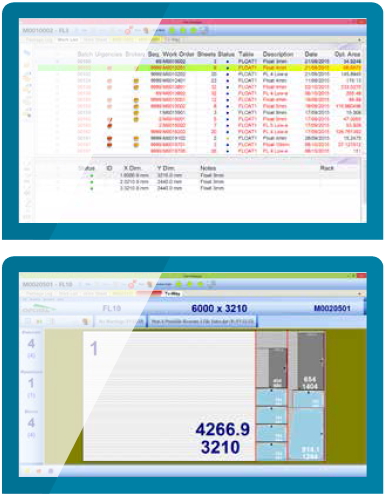 · Централизованный администратор всех функций линии резки. · Управление крановым погрузчиком в режиме реального времени, стол для резки с ЧПУ. · Системы хранения и сортировки. · Управление рабочими списками в соответствии с производственным графиком из офисной ERP-системы Opty-Way Enterprise. · Остановка/приостановка цикла резки и возможность переключения на другое рабочее задание. · Код ЧПУ Plate by Plate (заготовка за заготовкой) для автоматической резки. · Интернет-управление Offcuts. · Интерфейс сканера для распознавания и визуализации дефектов. · Синхронизация запаса стекла в режиме реального времени между крановым погрузчиком и Opty-Way Enterprise. · Отслеживание и запись времени резки. · Статистика производственных процессов и отходов. |